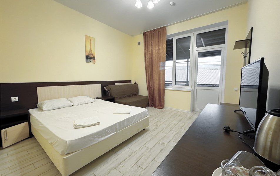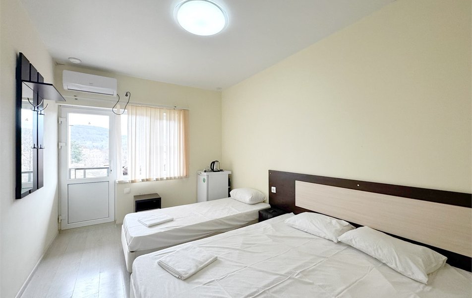 Пятиэтажный корпус отеля разместился на тихой улице Парковая в метрах от 500 моря. Жилой фон включает в себя двух- и трехместные номера Стандарт.