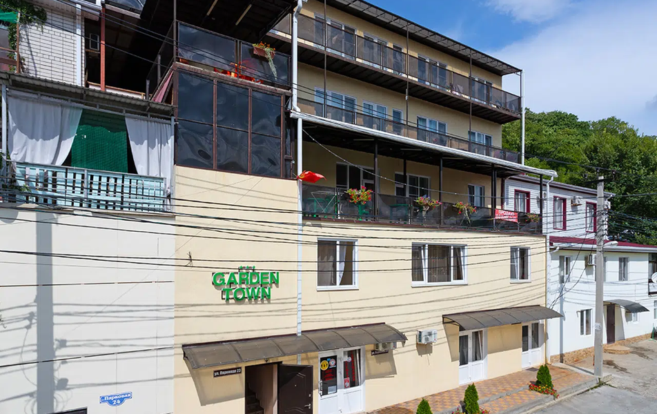 Отель «Garden Town» находится в живописном поселке Новомихайловское, расположенном на берегу Черноморского побережья между Туапсе и Геленджиком. Здесь есть магазины, кафе, аптеки. В транспортной доступности — аквапарк «Лето» в Ольгинке, за 40 минут можно доехать до Туапсе. Размещение:
