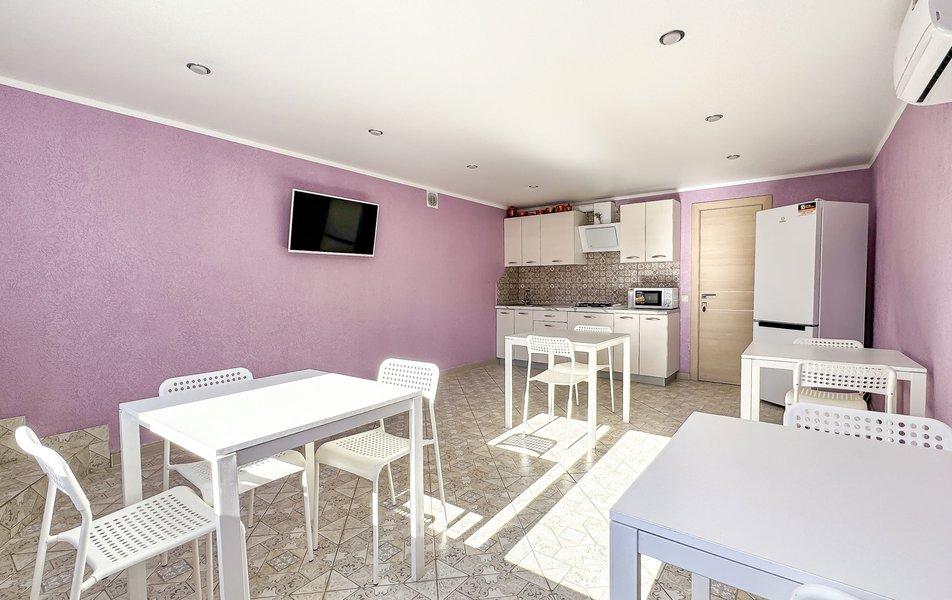 Гостевой дом предлагает удобства для самостоятельного приготовления пищи на общей кухне — бытовая техника и посуда.