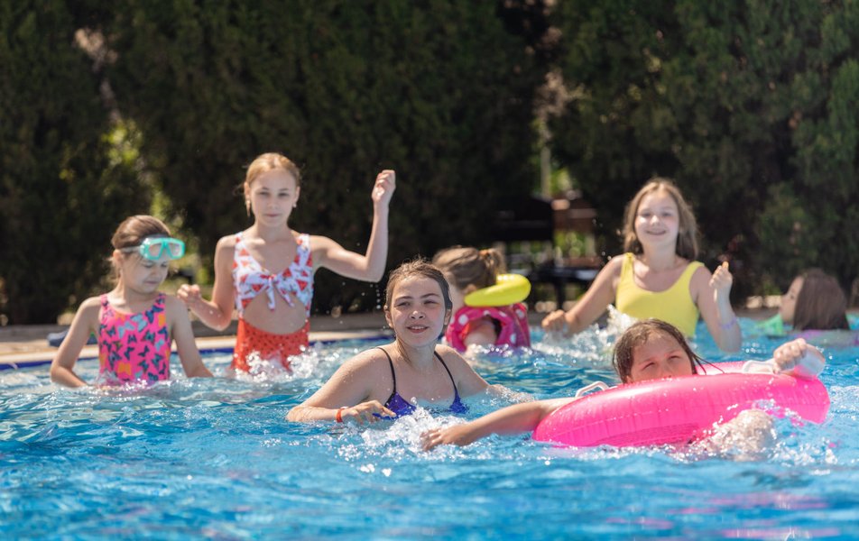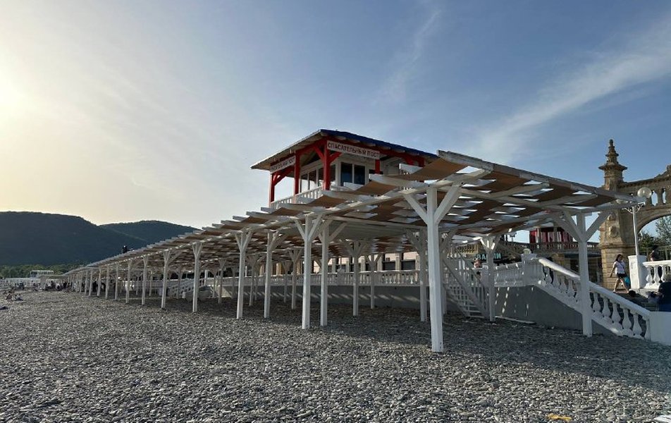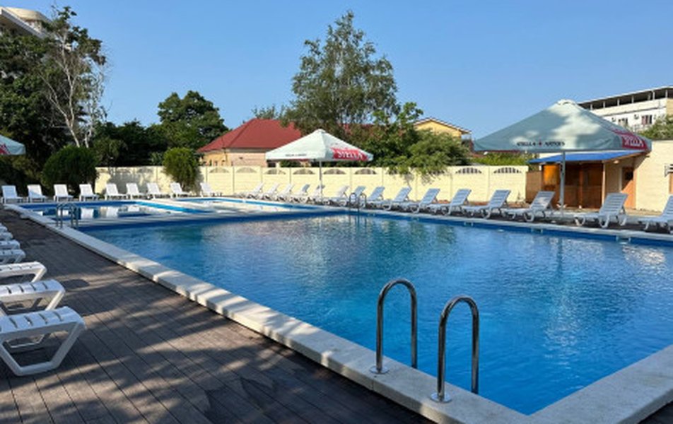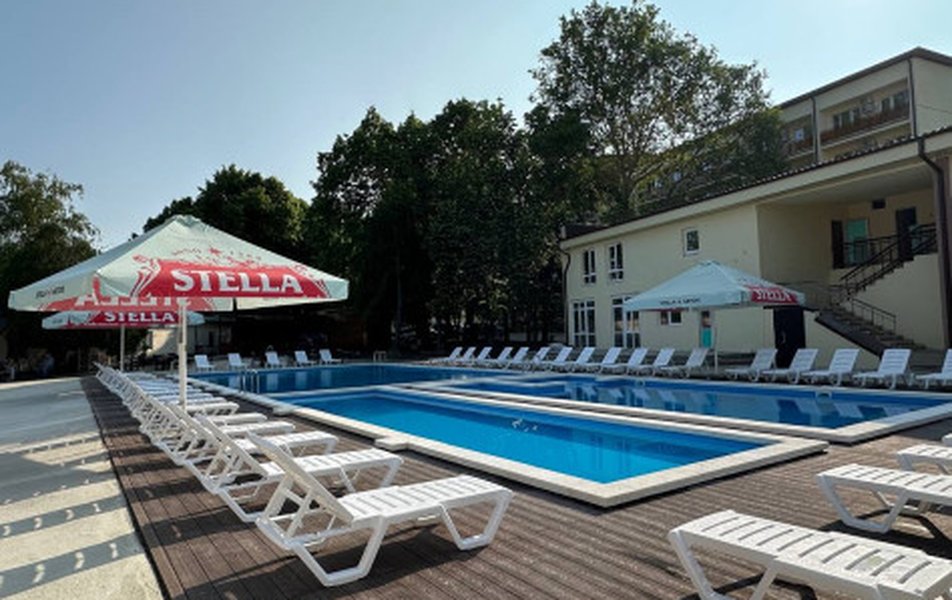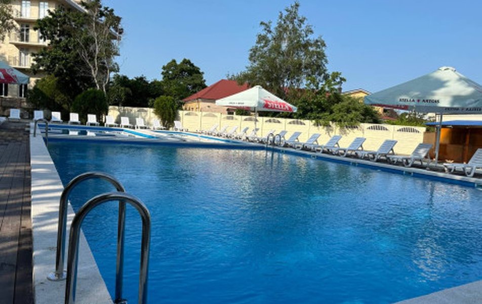 открытый бассейн с пресной водой, на территории организованы спортивные площадки. На ресепшене можно заказать такси, арендовать дополнительную бытовую технику и спортивный инвентарь. Детей развлекают веселые аниматоры, есть игровая площадка с горками. Пляж: В 800 метрах от пансионата находится поселковый пляж. Покрытый галькой пляж хорошо оборудован: на побережье установлены раздевалки, навесы, шезлонги, работает спасательный пост.